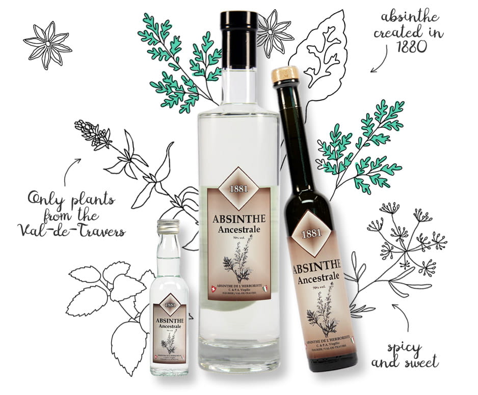 L’excellence et la tradition originelle de nos absinthes sont notre priorité. Nous ne vendons ainsi que des absinthes distillées artisanalement au Val-de-Travers, avec des produits naturels et dans le respect de la tradition ancestrale.