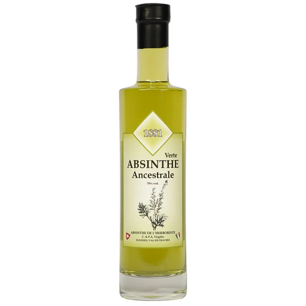 Comme sa grande soeur blanche, l’Ancestrale verte obéit à une recette datant de 1880 que l’arrière-grand père du distillateur, employé de la première distillerie d’absinthe de l’histoire, Pernod à Couvet, a jalousement conservée à travers les âges. Qu’il en soit remercié.